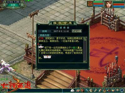 1) 男方可以到长安擂台(499,274)找红娘参加比武招亲。