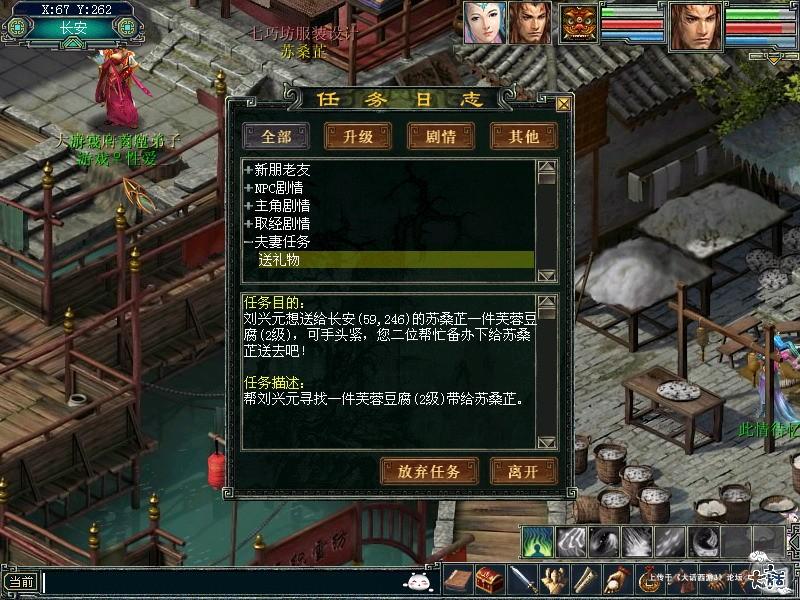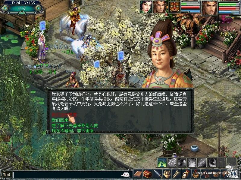 大话3第一个线上长期任务,开始感觉特垃圾,不过现在发现很不错哦!每天的任务可得经验60W左右,60多级的朋友升个2、3级没问题吧,至于如何做,大家自己研究喽。下面我们重点说的是夫妻任务