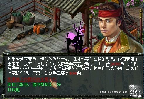 24号更新后以前商店里做夫妻任务得的+号神秘物品突然更新为七色染发现后就全F搜遍了商会所有低价出售+号的物品31号更新后七色染就可以用了可好多朋友不会用所以就专门嫌来无事发这个帖子说明一下不过效果只有三天哦~~有能力的玩家可以试验看了别忘了我的真正目的是骗分来的首先染色的地点是长