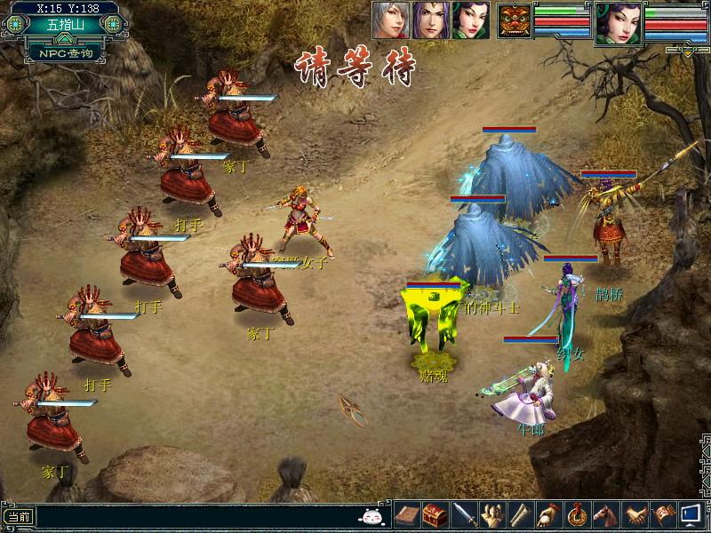 3、接着前往五指山(19,138)附近寻找她的丈夫薛平,这时有突厥打手和家丁出现,对你动粗,先后打败他们。