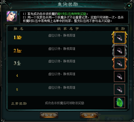 (3) 凡是成功击杀过妖魔的玩家均可领取一次正常奖励。