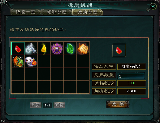 本周维护后,降魔积分可用于兑换红宝石碎片等物品。
